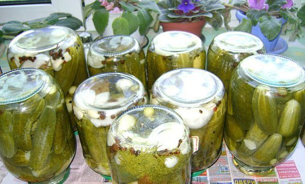 - Después de enrollar, las latas de verduras se pueden envolver debajo de un abrigo de piel, pero solo por un corto tiempo. Deben enfriarse completamente en la mesa de la cocina, de lo contrario los pepinos no se crujen.