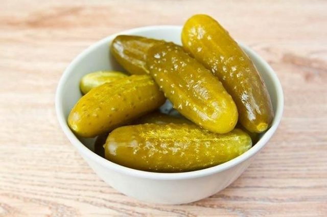 Se esparcen hojas de zanahoria y rábano picante en el fondo de frascos esterilizados. Las muestras que sean demasiado grandes se pueden cortar en varios trozos. Los pepinos se colocan encima de las verduras. Se vierten con salmuera hirviendo hecha de agua y especias. Para conservar más tiempo la merienda durante el invierno, los frascos se colocan en una cacerola ancha con un poco de agua y se esterilizan durante media hora. Luego se sellan herméticamente y se almacenan.