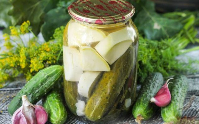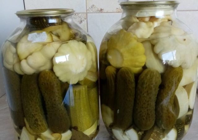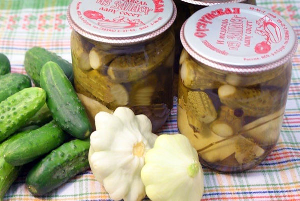 La calabaza enlatada con pepinos sin esterilizar facilita y acelera enormemente el proceso de decapado. Es importante adherirse estrictamente a todas las proporciones, de lo contrario, la pieza de trabajo puede agriarse.