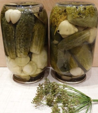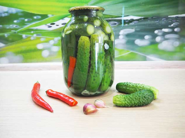 Esta receta no requiere agua hirviendo sobre los recipientes. Sin embargo, las verduras para cosechar durante el invierno deben tomarse de tamaño mediano, de lo contrario no se calentarán y la conservación puede deteriorarse.