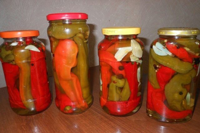 Pongo todos los componentes de la salmuera en frascos esterilizados, pimientos salados en escabeche, que están bien triturados y vertidos con salmuera. Sellar con tapas y dejar enfriar por completo.