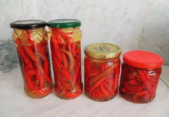 La transparencia de la salmuera le dirá que los pimientos encurtidos y salados en armenio están listos. Después de eso, el chile amargo se coloca en frascos, la salmuera se hierve y se vierte en platos, se cubre con tapas y se envía a un lugar de almacenamiento.