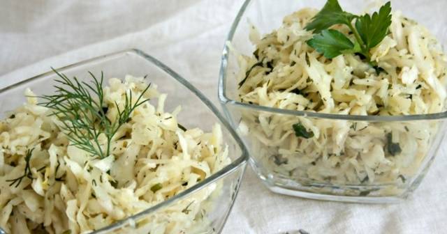 En los contenedores de cualquier anfitriona, las ensaladas en escabeche suelen ocupar un gran volumen durante todo el invierno. Y en el lugar más honorable entre ellos están los platos de repollo, ya que el repollo en otoño es la reina de las camas y solo los perezosos no hacen preparativos con él. El repollo en escabeche también es bueno porque, a diferencia del chucrut, se cocina muy rápido y es fácil enrollarlo, y usar gabinetes de cocina comunes para guardarlo si no hay suficiente espacio en el refrigerador y no hay bodega. Pero cuando llegan invitados inesperados o hay otra razón para poner la mesa con encurtidos, puede sacar un frasco de ensalada de repollo en escabeche de un lugar apartado y no tiene que pensar en nada más. O, por el contrario, literalmente un día antes: dos personas lo marinan antes de la celebración planificada y se le proporcionará el deleite de los invitados.