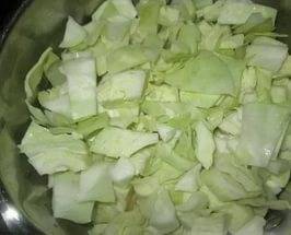 - Marina el repollo en una cacerola. Ponemos verduras en capas. Debe haber repollo en la parte superior. Compactamos las capas antes de verter.