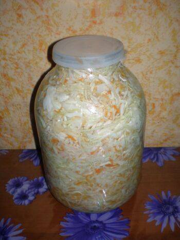 Puede probar el repollo picante crujiente sin vinagre después de tres días. Puedes cocinar varios platos a partir de él. El repollo en escabeche sin vinagre se almacena en un lugar fresco. Buen provecho a todos.