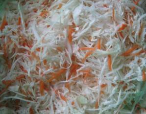 - Triture el repollo y las zanahorias de la manera habitual, con tiras. Pasar el ajo por una trituradora.
