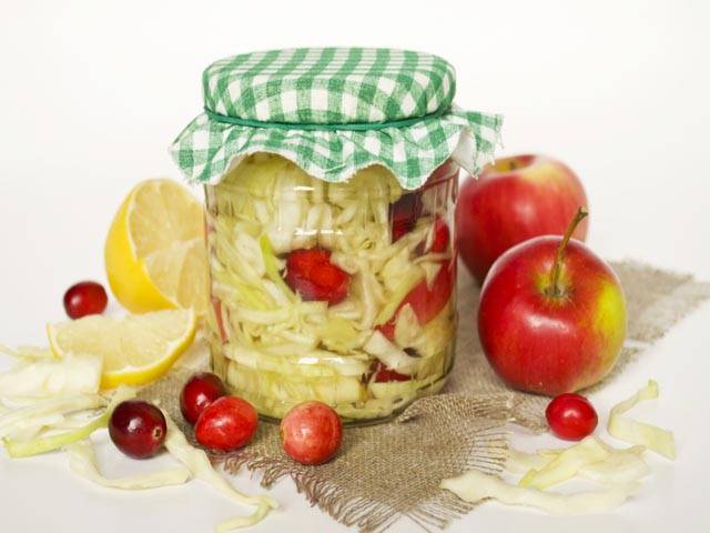 - Para obtener repollo en escabeche con diferentes sabores, se agregaron diversas verduras (pimientos morrones, remolacha), manzanas agridulces y diversas bayas y especias.