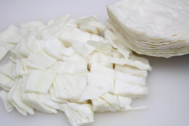 - El repollo en la cantidad de 3 kg se debe picar, si se desea, en trozos grandes o pequeños.