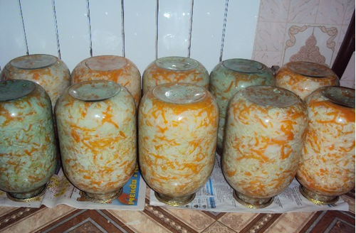 - Después de 3 días, la merienda estará completamente fermentada y lista para comer. Guarde la ensalada en escabeche en el refrigerador.