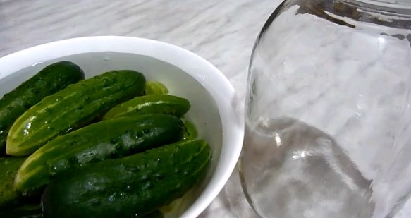 - Enjuague bien los pepinos, el producto debe infundirse durante 2 horas.¡Importante! No se debe descuidar el proceso de remojo. El agua hará que las verduras estén crujientes y firmes.