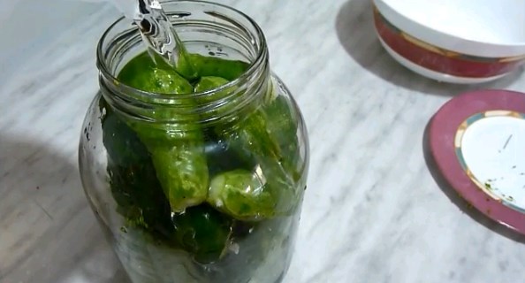 - Vierta el pepinillo sobre los pepinos, déjelo reposar (tiempo - 1 hora).