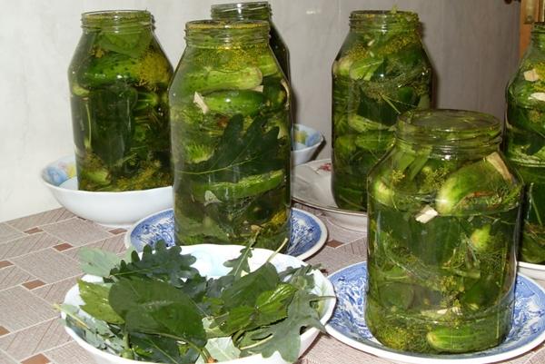 Agregar hojas de roble al rollo hace que los pepinos estén firmes y crujientes.