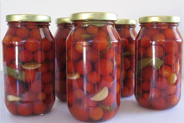 Puede marinar tomates con ajo de esta manera.La receta es un poco más complicada que la anterior, ya que una de las etapas es la esterilización secundaria.