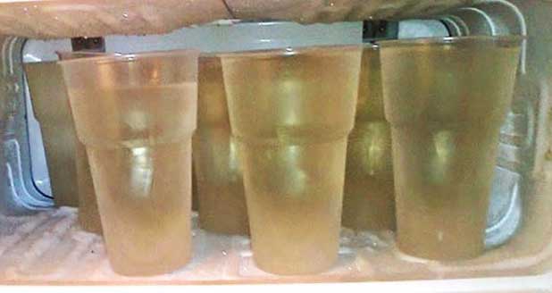 Esto significa que si el congelador no tiene suficiente potencia para congelar instantáneamente grandes volúmenes de esta bebida curativa, entonces durante el proceso de congelación puede comenzar a acidificarse y volverse un tono amarillento turbio. No se sorprenda en tales casos si después de congelar la savia de abedul se vuelve beige oscuro o amarillo.
