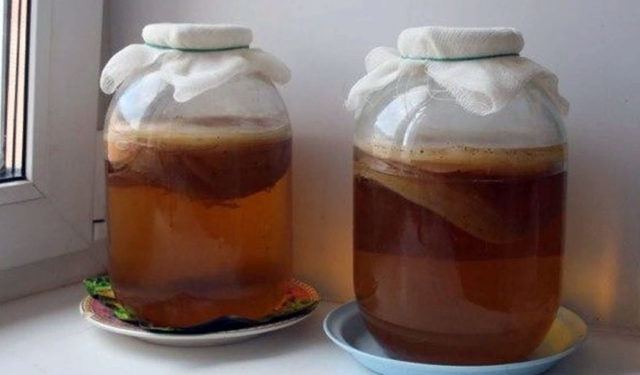 La infusión se hace con un volumen de al menos 2 litros, después de lo cual se filtra bien y se enfría a temperatura ambiente. Luego se agrega azúcar a la solución y se mezcla bien hasta que se disuelva por completo. El líquido se vierte en un frasco de 3 litros.