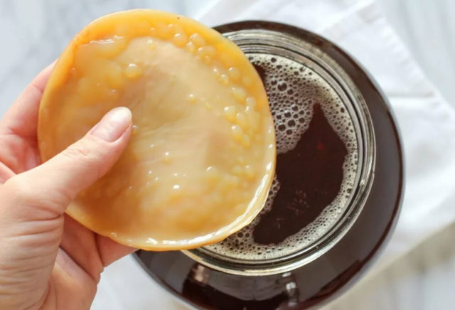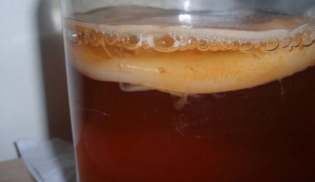La kombucha o medusa (nombre científico) parece una película redonda y gruesa de color blanco-marrón, amarillo o rosa, que recuerda a una medusa. Las principales condiciones para el desarrollo del cuerpo son la presencia de azúcar y hojas de té. No importa qué tipo de azúcar se use: azúcar regular, fructosa o glucosa.
