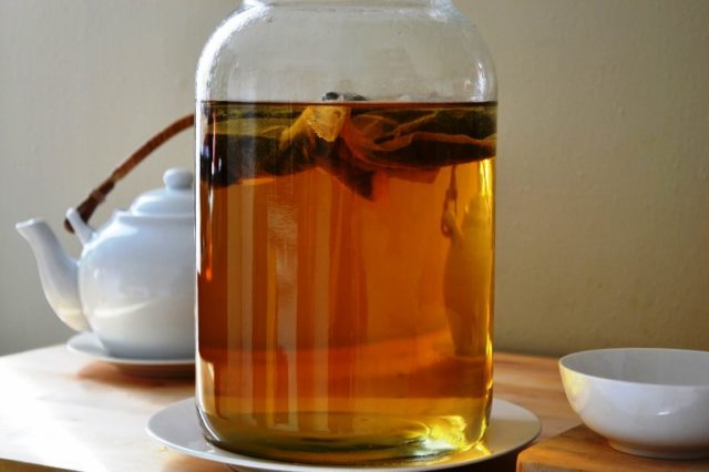 - cuando el hongo crece un poco y se hunde hasta el fondo de la lata, se cambia a té negro o verde poco elaborado;