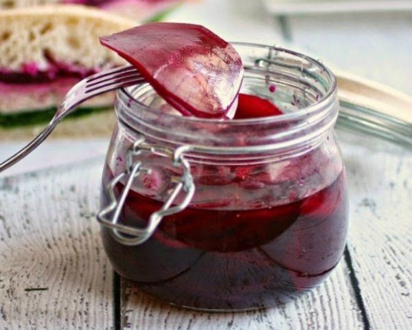 Esta receta de remolacha caliente para el invierno es muy simple en sí misma, aunque requiere una esterilización adicional, ya que no usa vinagre en absoluto. Pero los representantes de la mitad fuerte de la humanidad seguramente lo apreciarán.