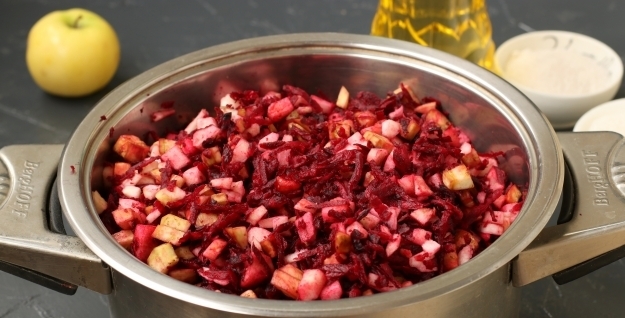 Receta de remolacha picante para el invierno con berenjena y manzanas.