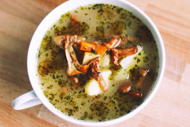 Una receta simple para sopa de champiñones rebozuelos congelada