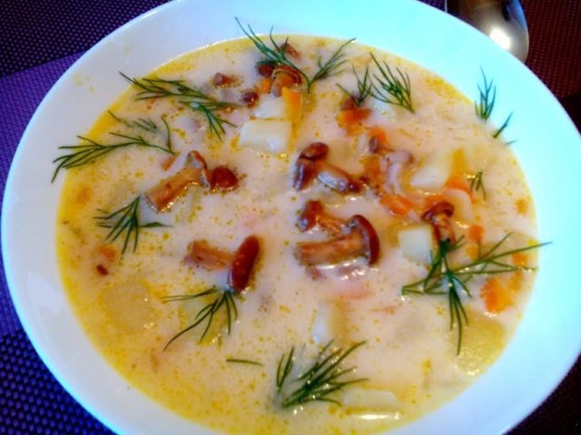La sopa congelada de rebozuelos es un plato único por su característico aroma y sabor. Los regalos del bosque contienen una gran cantidad de proteínas, aminoácidos y oligoelementos, ricos en vitaminas y antioxidantes. Los rebozuelos en sí se distinguen por el hecho de que no pierden sus propiedades únicas al congelar y cocinar, no son altos en calorías, por lo que son apreciados por quienes quieren adelgazar.