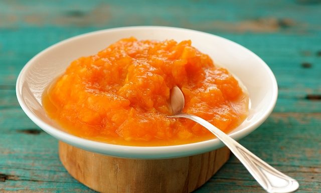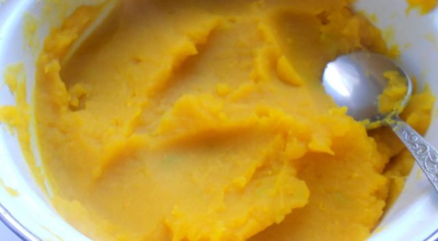 - Los trozos de calabaza se hierven hasta obtener una masa blanda, que se tritura hasta obtener un estado de puré.