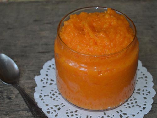 - Al día siguiente, la mezcla de calabaza y naranja se vierte con agua y se hierve durante unos 30 minutos después de hervir. La mezcla debe agitarse constantemente.