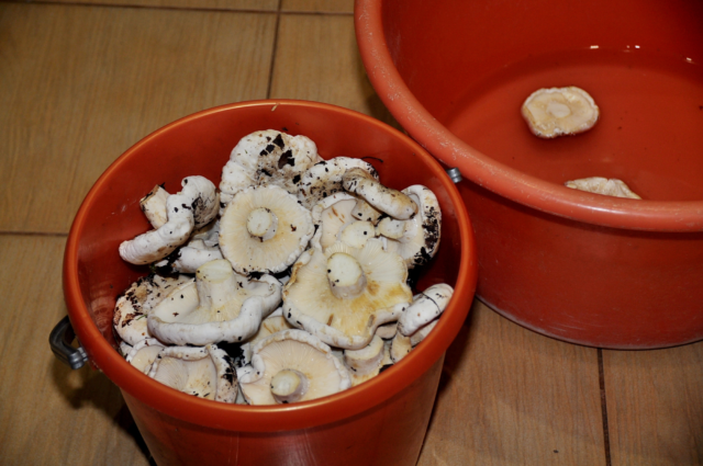 Los hongos de leche blanca se colocan en agua durante un día, los negros, hasta 3 días, otros tipos, hasta 1,5 (días).