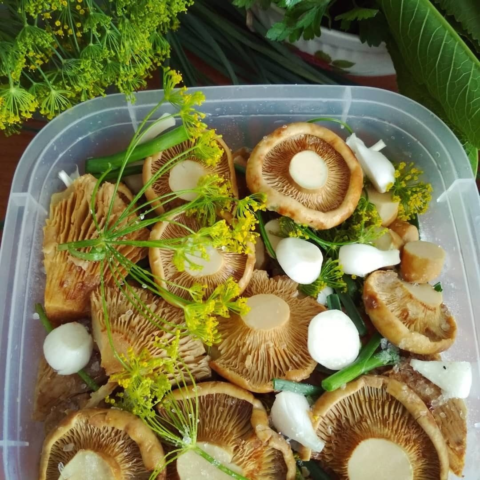 Video - salazón en caliente de champiñones de leche en polvo con ajo:
