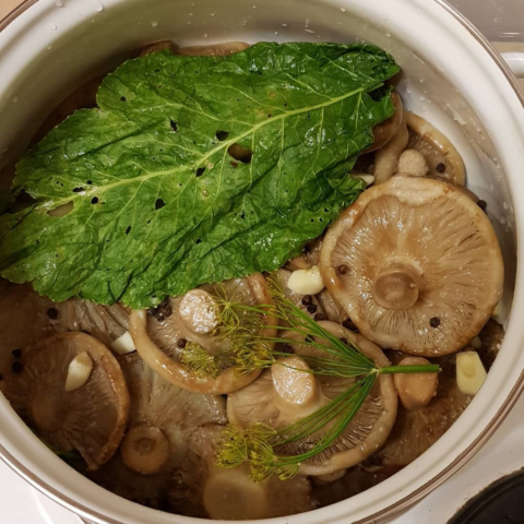 Para salar los champiñones secos de forma caliente durante el invierno, a menudo se utiliza la ebullición.