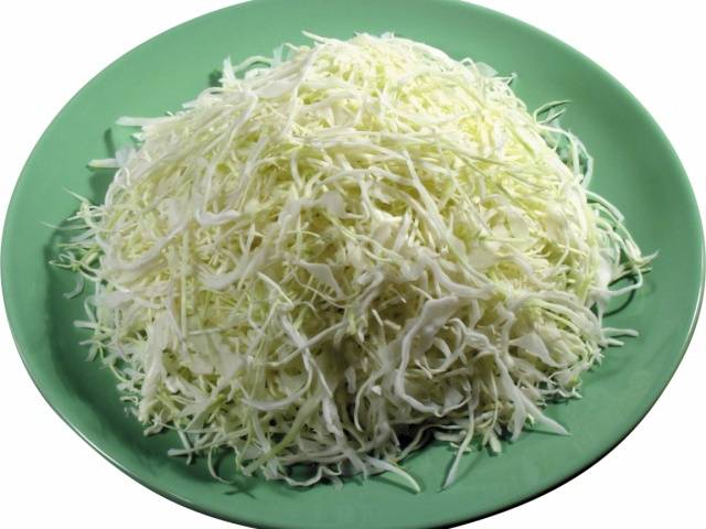 - El repollo en la cantidad de 2 kg se pica finamente.