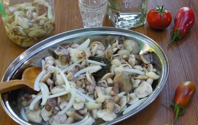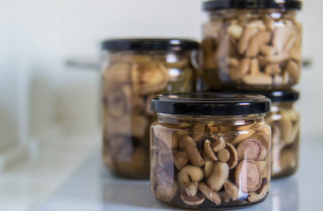 - Llenar frascos esterilizados con champiñones, rellenar con salmuera hervida y esterilizar durante 15 minutos.