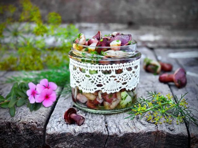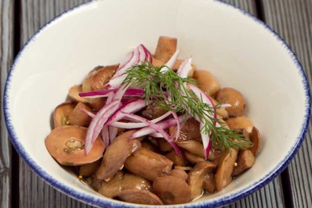 Si se sala adecuadamente el boletus de manera caliente, se puede guardar un apetitoso bocadillo durante todo el año. Los trozos de hongos carnosos y moderadamente picantes con hierbas y especias generalmente se sirven con cebollas dulces crujientes, un chorrito de vinagre y aceite vegetal fragante. El uso de aceite de mantequilla caliente saturará el cuerpo con proteínas y aminoácidos sin productos animales.
