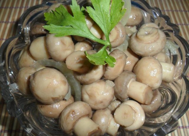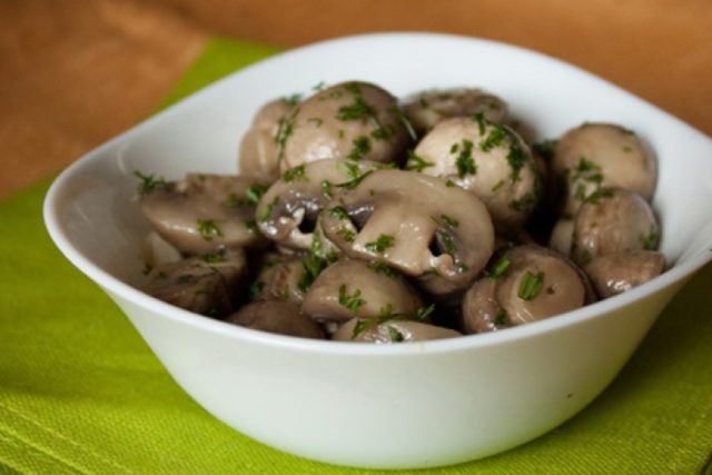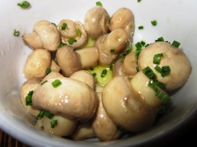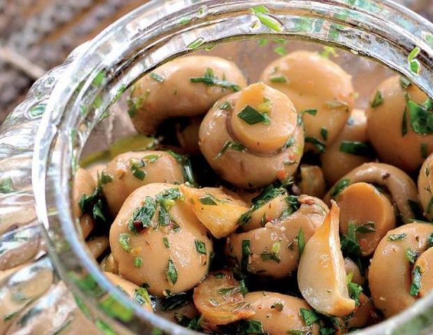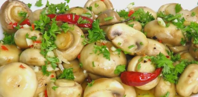 Una receta rápida de champiñones salados con aceite y vinagre para el invierno.