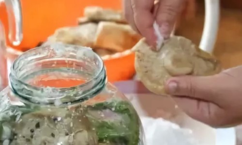 El remojo es un paso importante. Dado que los hongos de la leche tienen una carne densa, a diferencia de otros tipos de hongos, se remojan antes de la fermentación durante varios días a temperatura ambiente. Para que al mismo tiempo no floten y queden completamente cubiertos de agua, se coloca un pequeño peso encima de ellos.
