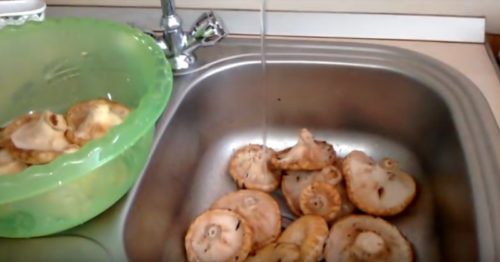 Con este método de preparación, los champiñones de leche pasan por las etapas de remojo y salazón, sin pasar por la ebullición. Esta receta se diferencia del método caliente en el tiempo de espera. El proceso de preparación: limpieza y remojo se lleva a cabo de acuerdo con las mismas reglas que para el método en caliente.