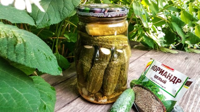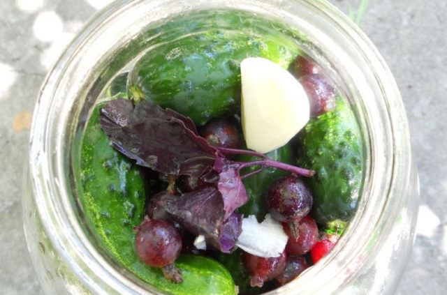 Las conservas de verduras para el invierno se complementan con diversas especias y hierbas. Algunos de los ingredientes más comunes son la raíz de rábano picante, el eneldo, la hoja de laurel y las semillas de mostaza. Al igual que otras hierbas, la albahaca, al encurtir pepinos, puede afectar drásticamente el sabor de la conservación. Resulta muy aromático, ligeramente ácido, con un amargor ligeramente pronunciado.