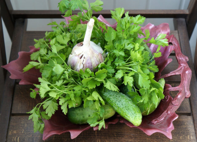 Recetas de pepinos enlatados para el invierno con perejil.