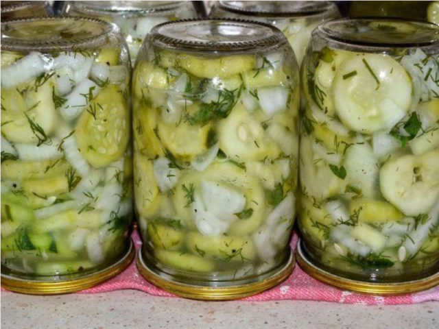 En cuanto a la vida útil, para los platos que utilizan vinagre que no han sido esterilizados, suele ser de 9 a 10 meses. Los giros esterilizados, recolectados para el invierno, se pueden almacenar de manera segura durante 1-1.5 años. Las latas abiertas se almacenan en el refrigerador por no más de 3 días.