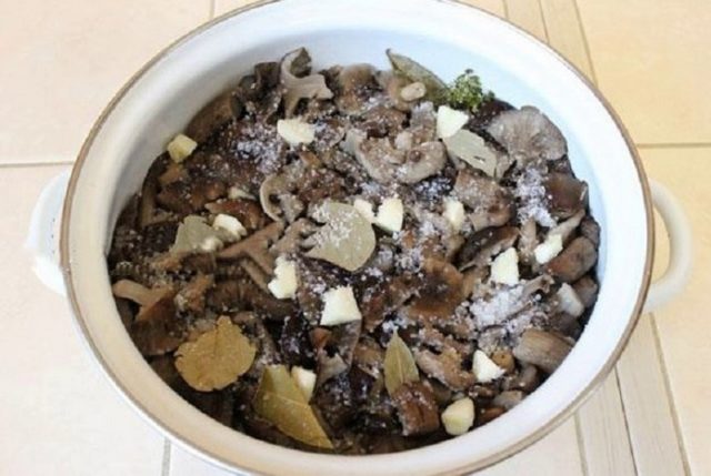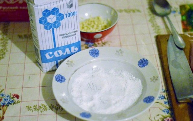 - La cantidad de sal se determina después de pesar a razón de 50 g por 1 kg de agárico de miel hervido.