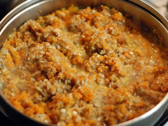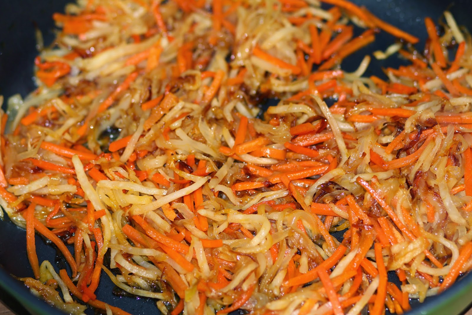 - Freír la cebolla picada por separado, luego las zanahorias ralladas.