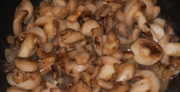 - Freír los champiñones con cebolla a fuego alto durante 10 minutos.