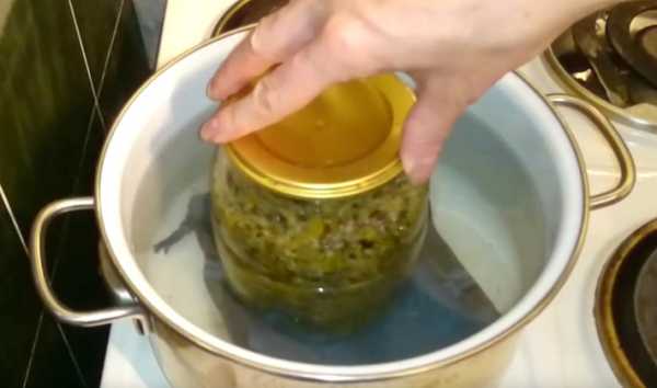 El caviar preparado de agárico de miel se coloca en frascos limpiamente lavados con soda (de 0,5 la 1 l) y se coloca en una cacerola plana grande con un nivel de agua que llega a los "hombros" de los frascos. Coloque un paño de cocina o un soporte de madera en el fondo de la olla. Cubra con tapas. El agua de una cacerola se calienta a ebullición y desde ese momento se hierve durante exactamente media hora.