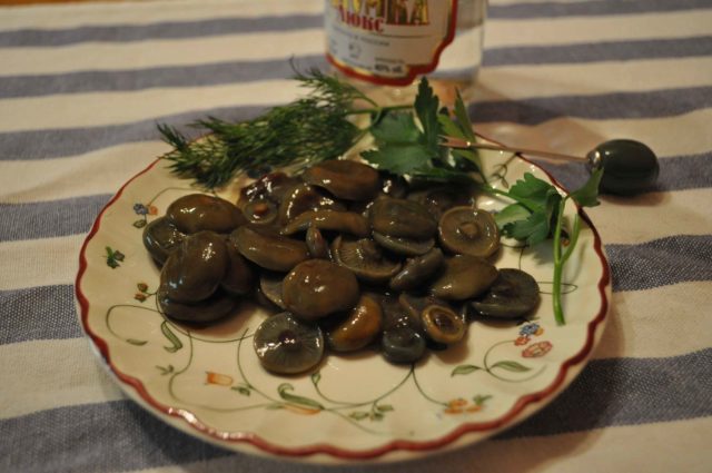 - Si los cuerpos fructíferos no estaban completamente cubiertos de líquido, la parte de la superficie cambia de color bajo la influencia del oxígeno. Tal producto pierde su presentación, pero conserva su sabor.