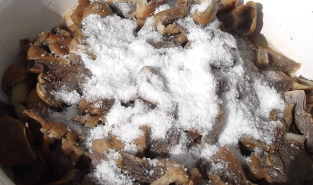 Se utiliza la concentración máxima de salmuera: al menos 50 g de sal por 1 kg de champiñones. El resto de la tecnología de cocción no es diferente a la tradicional.