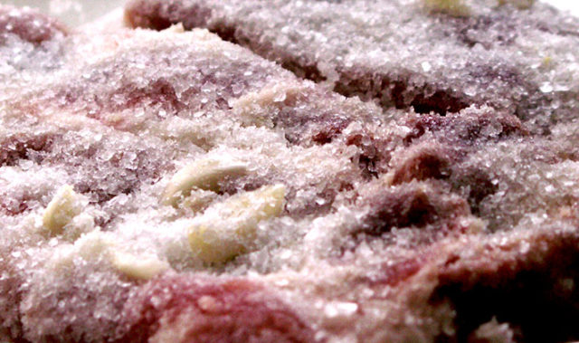 - La capa superior se espolvorea con sal en abundancia.