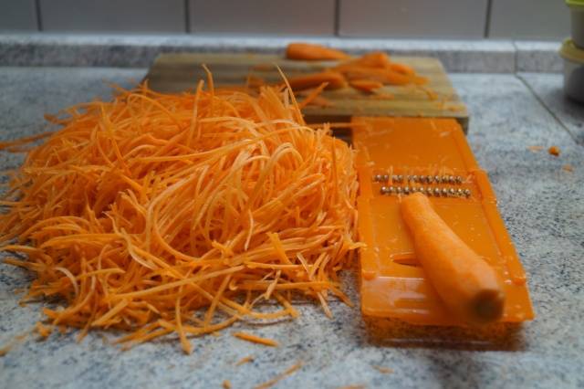 - Luego frote 0,5 kg de zanahorias.