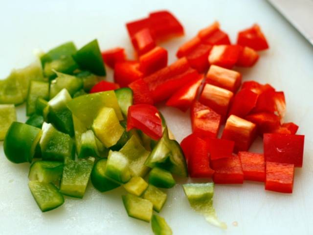 - Una libra de pimiento dulce se debe picar al azar, quitando primero las semillas.