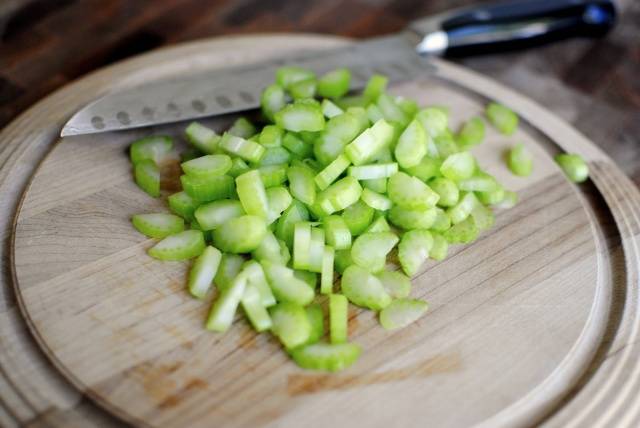 - Las hojas de apio (0,1 kg) se cortan finamente.