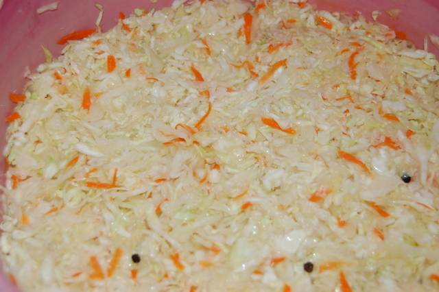 - Para la preparación final, el repollo salado debe mantenerse en un lugar fresco durante 2 días, luego mezclado y colocado en recipientes de vidrio con tapa hermética.